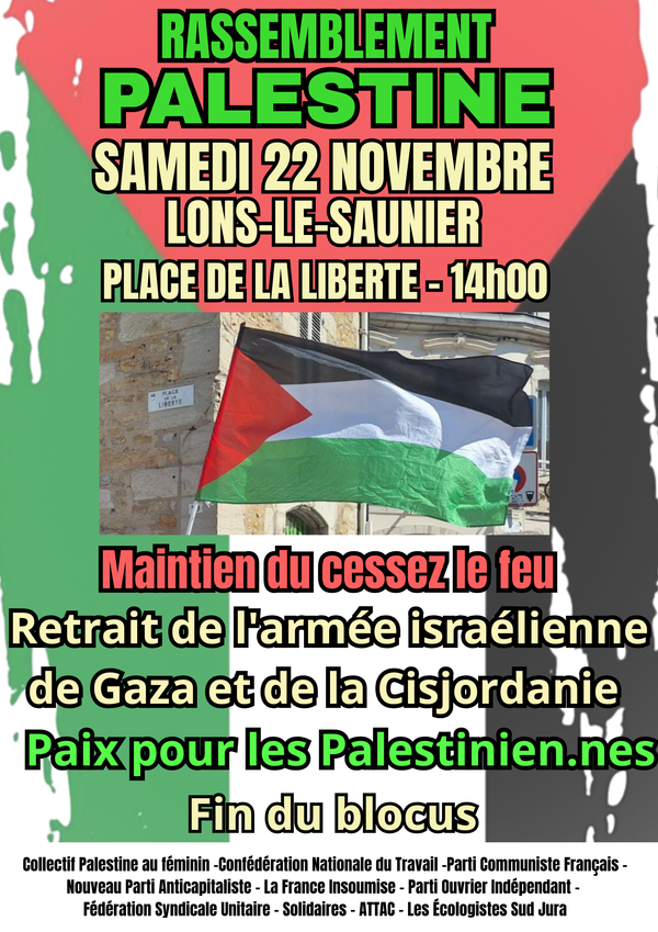 En savoir plusRassemblement soutien à la Palestine Lons