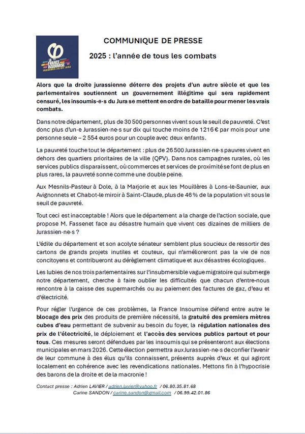 Alors que la droite jurassienne déterre des projets d’un autre siècle et que les parlementaires soutiennent un gouvernement illégitime qui sera rapidement censuré, les insoumis·e·s du Jura se mettent en ordre de bataille pour mener les vrais combats.