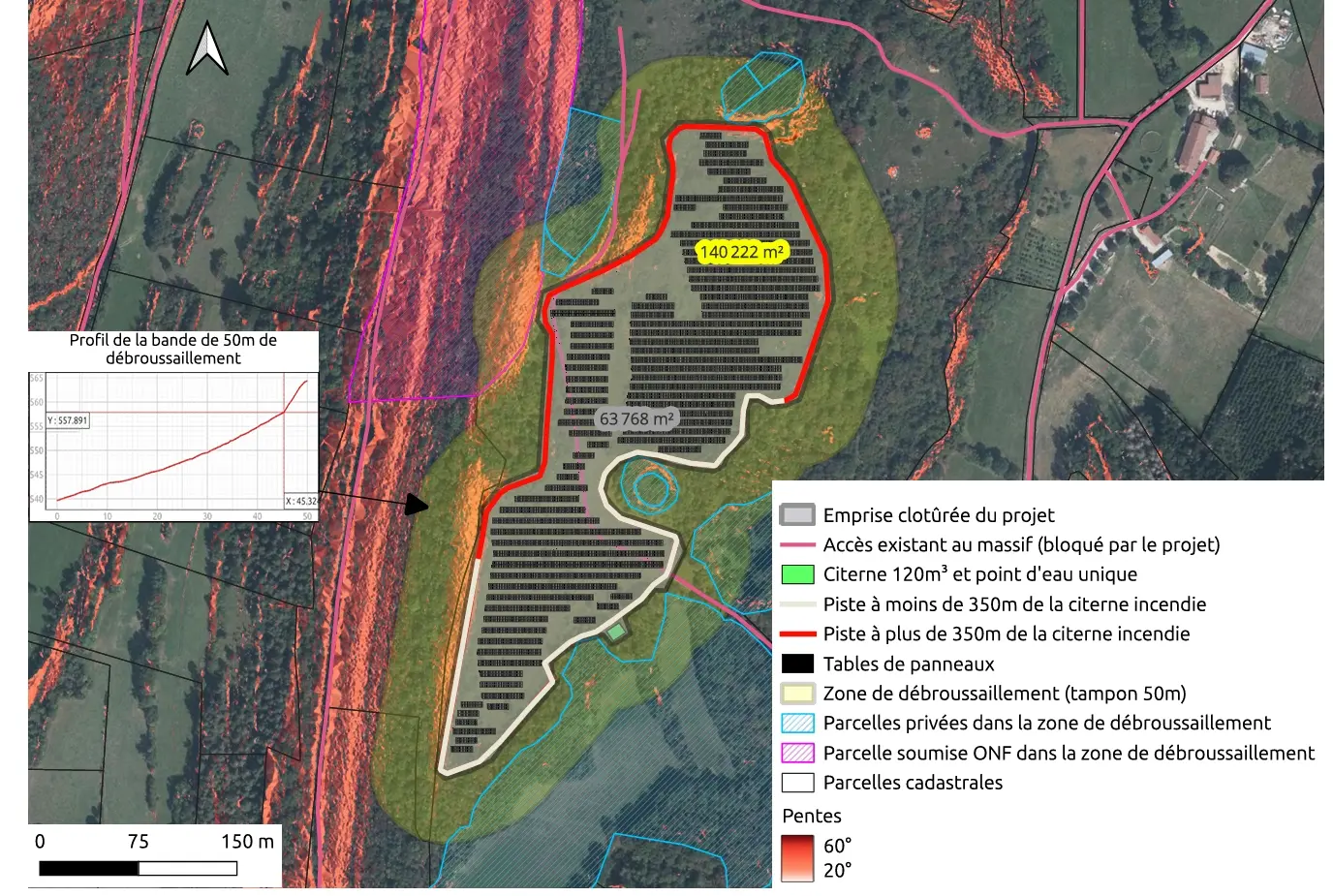 La carte de débroussaillement réalisée par les militants, reprenant les informations du dossier technique et appréciée des commissaires enquêteurs.