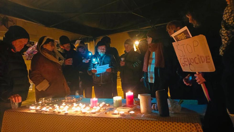 Ce samedi 4 janvier à 18 heures, une soixantaine de personnes se sont rassemblées à Arbois à l’appel d’Amnesty International et de la coordination Cœur des Luttes pour une veillée avec bougies afin de dénoncer le génocide en cours à Gaza, et appeler au cessez-le-feu immédiat.