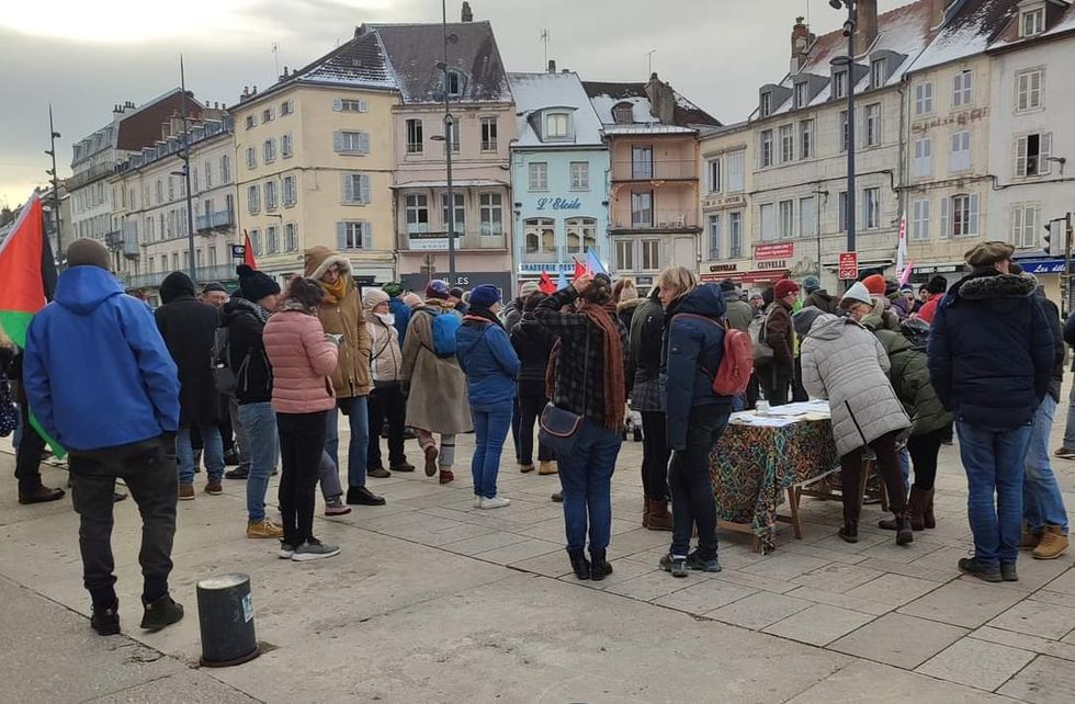 Il est 10h, sur la place de la Liberté de Lons-le-Saunier; entourés d’une centaine de manifestantEs, trois responsables politiques, syndicaux.les et associatif.ve.s lancent un appel collectif à la population, dénonçant un tournant dangereux dans l’histoire de notre République.
