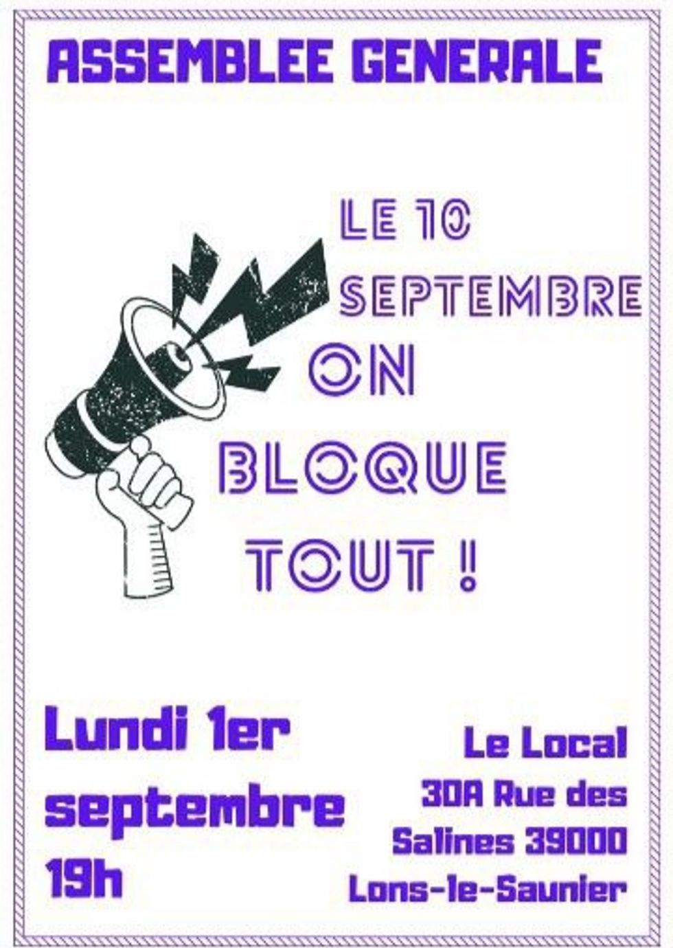 Une assemblée générale pour la mobilisation du 10 septembre est annoncée: