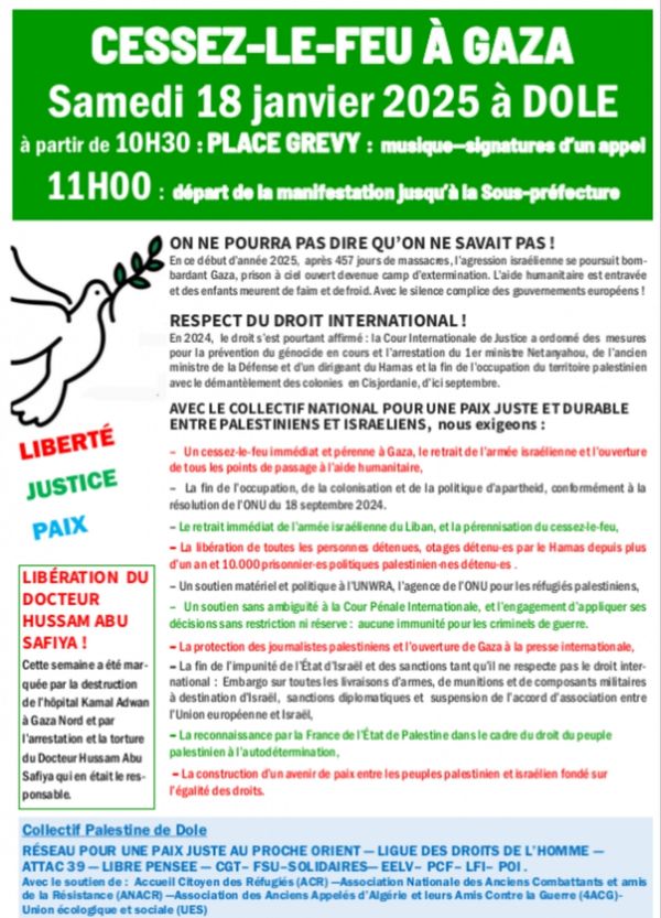 Manifestation pour un cessez-le-feu immédiat et durable à Gaza à Dole samedi 18 janvier.
