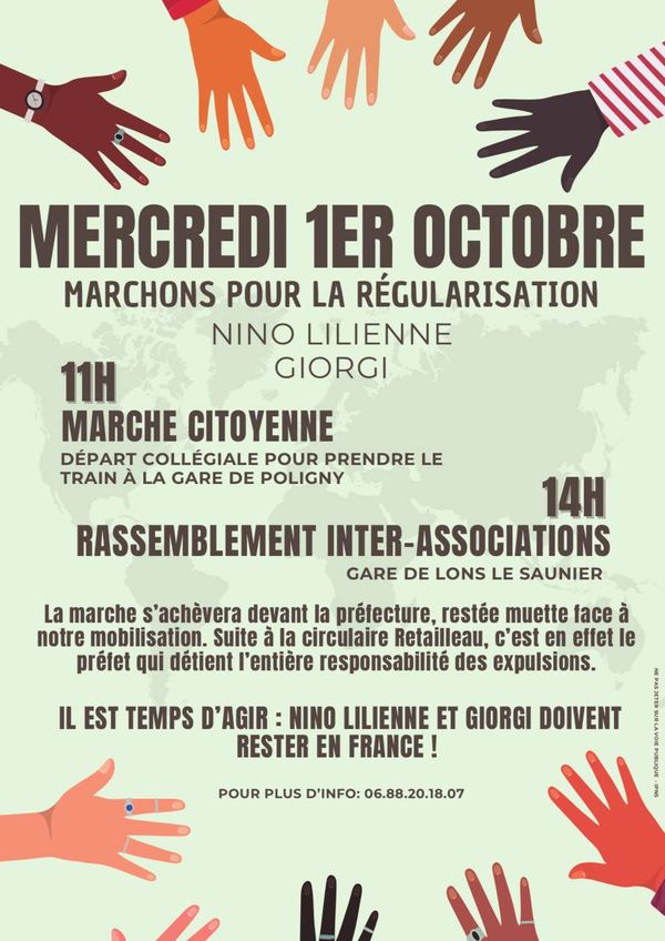 Mercredi 1 octobre : marchons pour la régularisation de Nino, Lilienne et Giorgi.