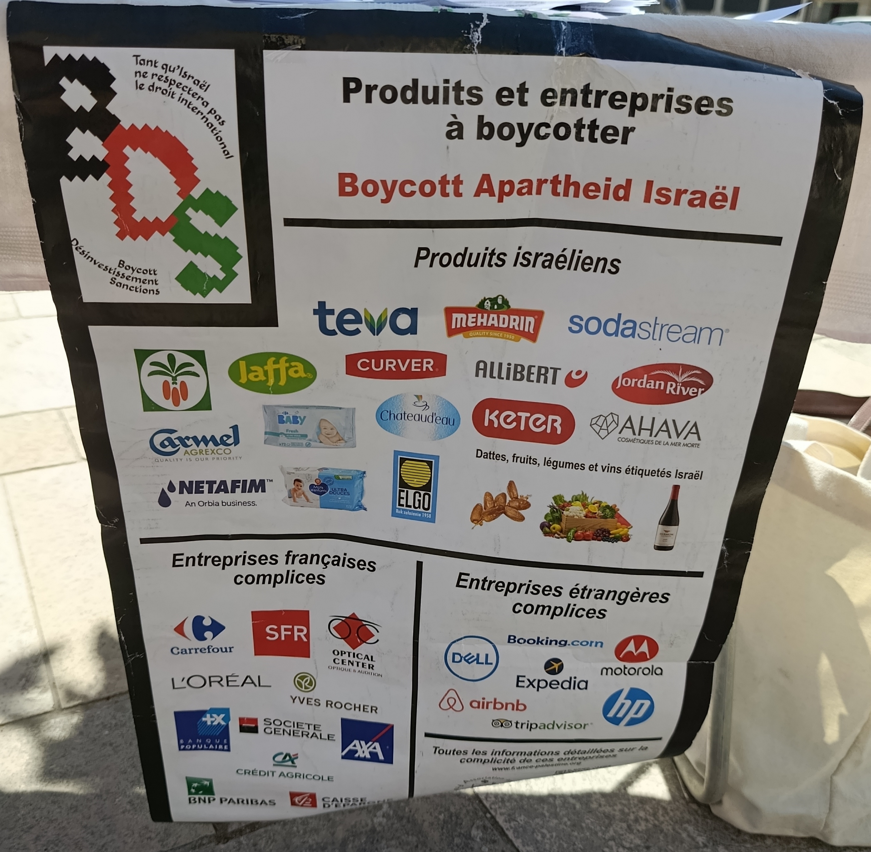 • intensifier le boycott des produits israéliens ainsi que des entreprises et institutions impliquées dans le soutien ou le financement du système dénoncé.