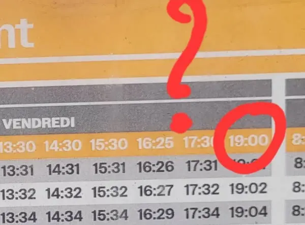 Je vois les horaires de retour à Étables: un bus à 17h30, donc c'était mort, et un, le dernier, à 19h, soit 1h30 entre les 2 derniers bus pour revenir en ville.