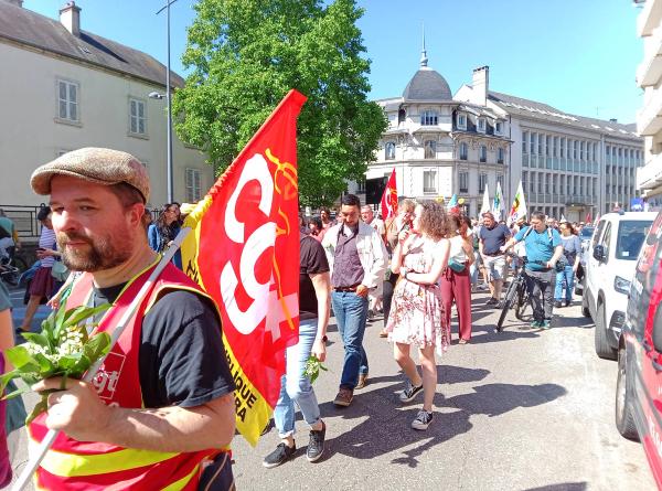 1er mai à Lons-le-Saunier: pour les droits, la paix et les services publics - la lutte continue.